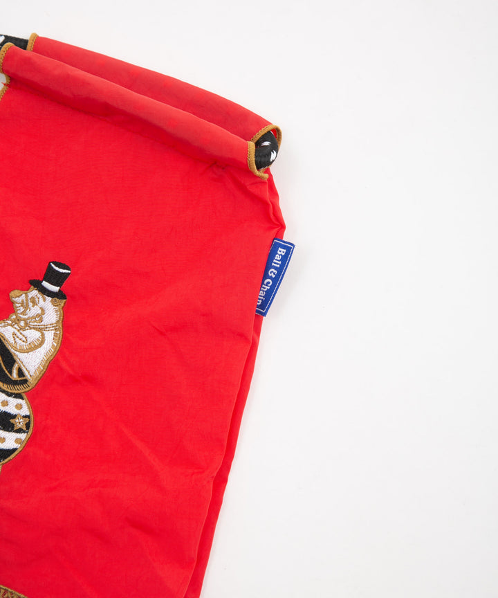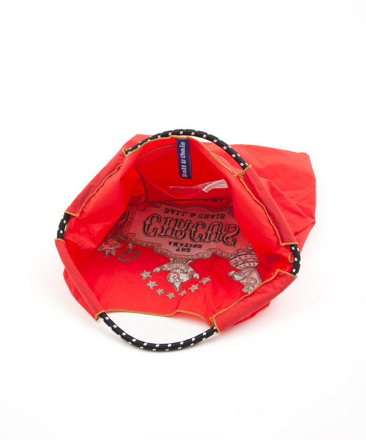 Ball and Chainは大切に使い続けたいと思える優れた デザインのショッピングバッグです。 耐久性、撥水性に優れた厚手のポリエステル素材に、 グラフィックデザインをそのまま「刺繍」で施すことで、 高級感がありデザイン性の高いバッグとなっています。 丸く折りたたみ付属のゴムバンドでとめると手のひらほどの コンパクトサイズになるため、持ち運びにも便利です。 普段のお買い物はもちろん、エコなプレゼントとしてもおススメです。