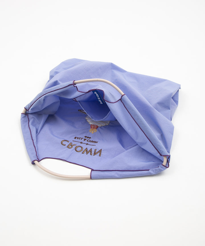 Ball and Chainは大切に使い続けたいと思える優れた デザインのショッピングバッグです。 耐久性、撥水性に優れた厚手のポリエステル素材に、 グラフィックデザインをそのまま「刺繍」で施すことで、 高級感がありデザイン性の高いバッグとなっています。 丸く折りたたみ付属のゴムバンドでとめると手のひらほどの コンパクトサイズになるため、持ち運びにも便利です。 普段のお買い物はもちろん、エコなプレゼントとしてもおススメです。
