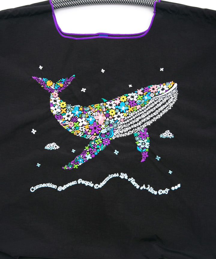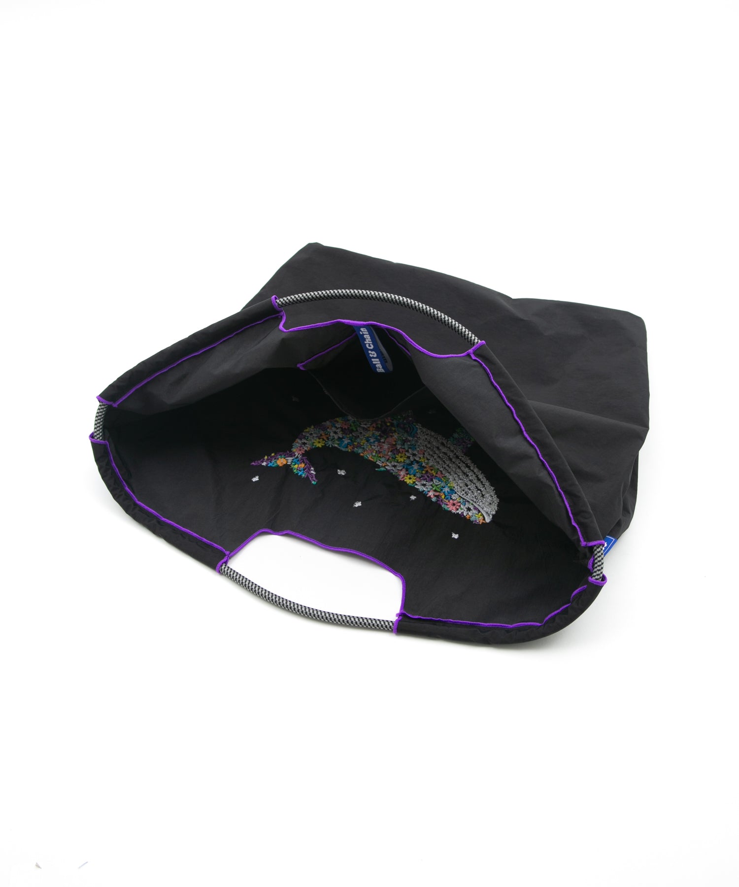 Ball and Chainは大切に使い続けたいと思える優れた デザインのショッピングバッグです。 耐久性、撥水性に優れた厚手のポリエステル素材に、 グラフィックデザインをそのまま「刺繍」で施すことで、 高級感がありデザイン性の高いバッグとなっています。 丸く折りたたみ付属のゴムバンドでとめると手のひらほどの コンパクトサイズになるため、持ち運びにも便利です。 普段のお買い物はもちろん、エコなプレゼントとしてもおススメです。