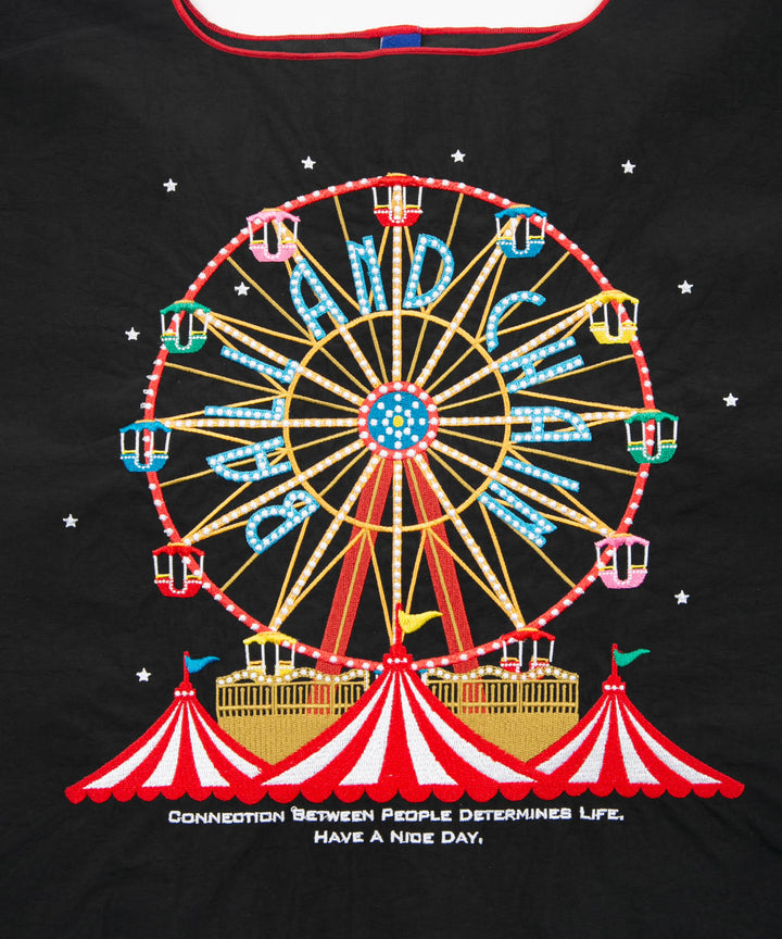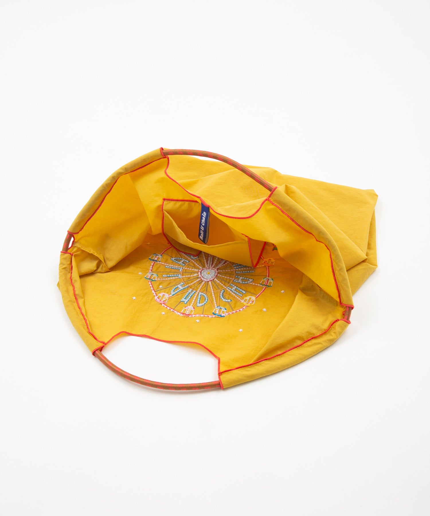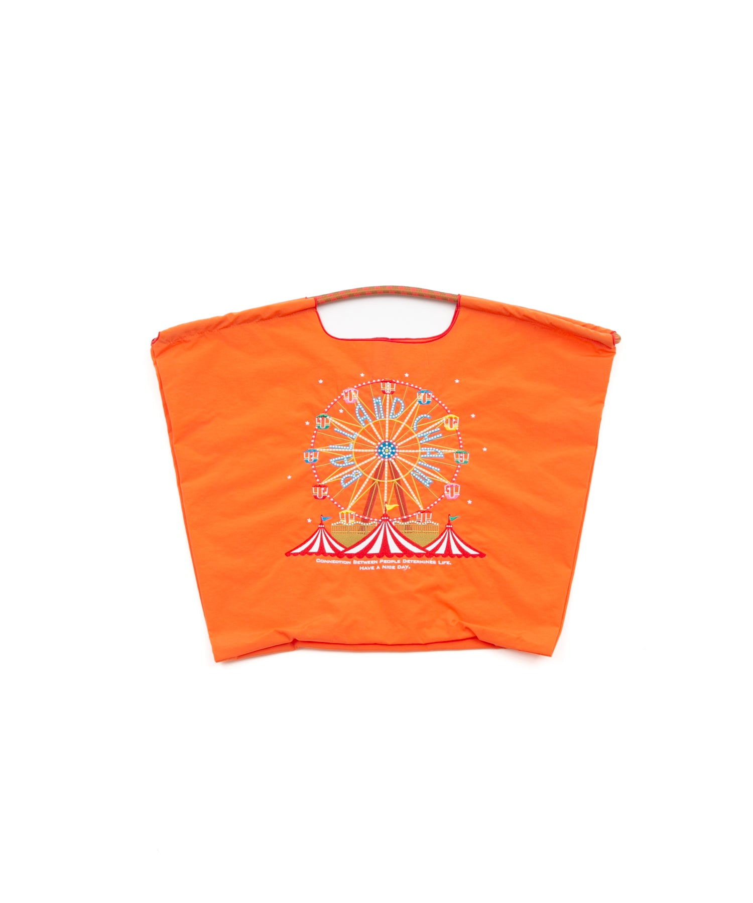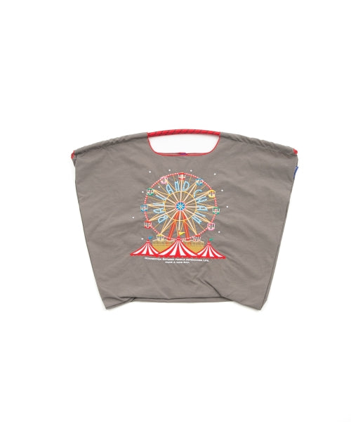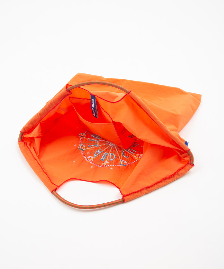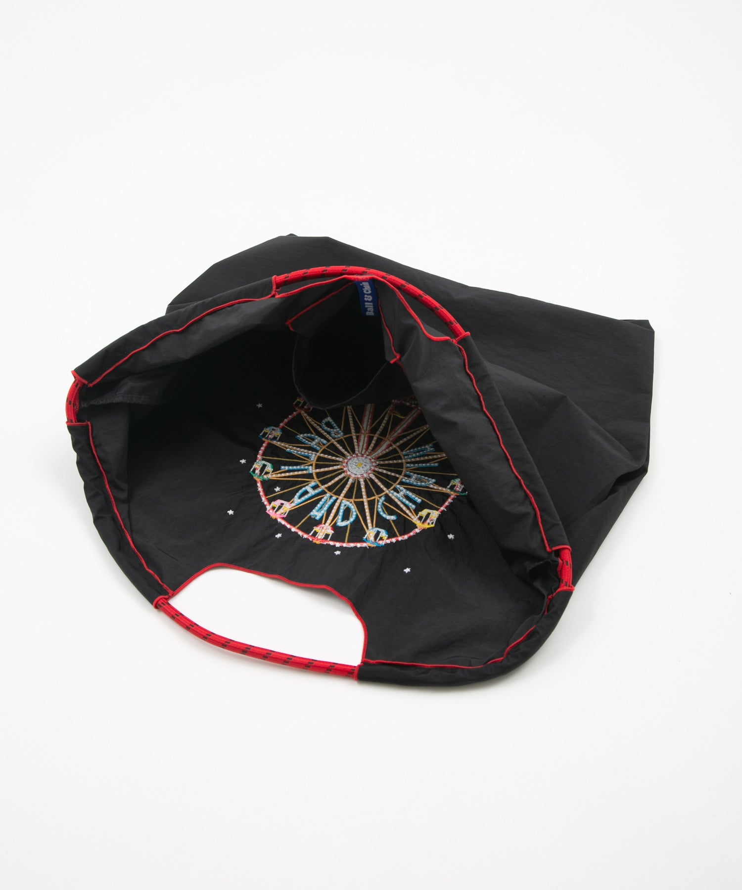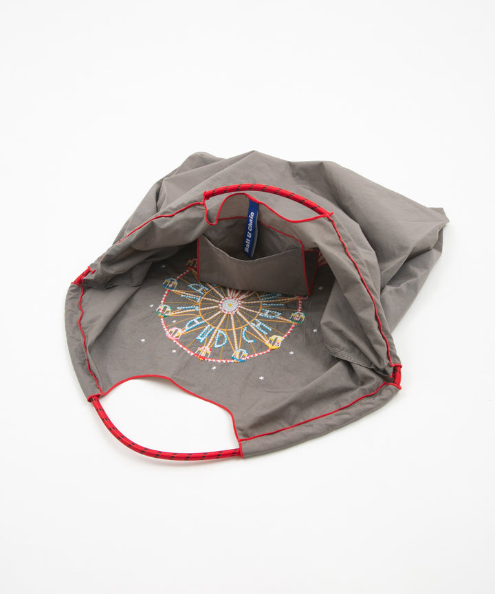 Ball and Chainは大切に使い続けたいと思える優れた デザインのショッピングバッグです。 耐久性、撥水性に優れた厚手のポリエステル素材に、 グラフィックデザインをそのまま「刺繍」で施すことで、 高級感がありデザイン性の高いバッグとなっています。 丸く折りたたみ付属のゴムバンドでとめると手のひらほどの コンパクトサイズになるため、持ち運びにも便利です。 普段のお買い物はもちろん、エコなプレゼントとしてもおススメです。