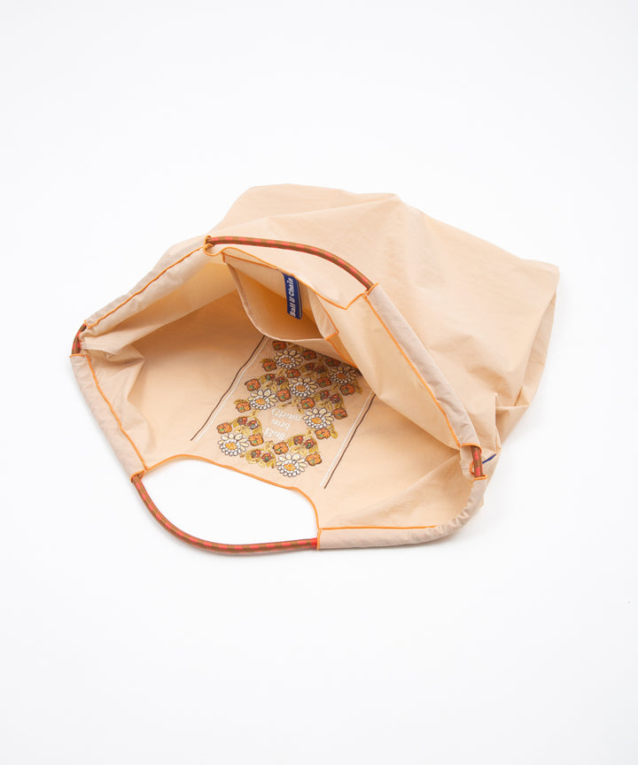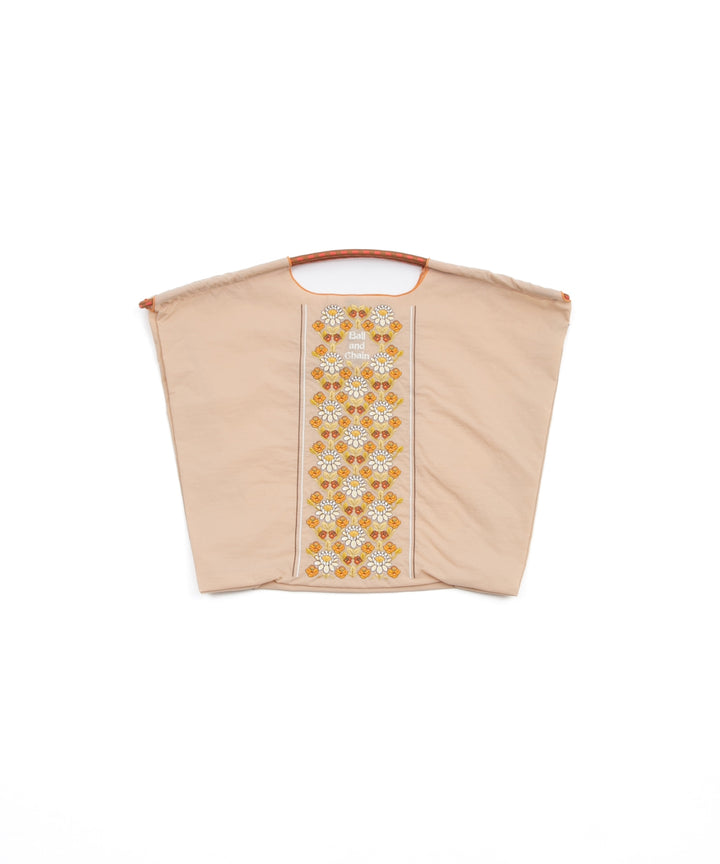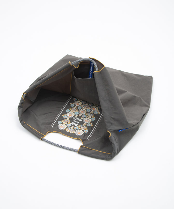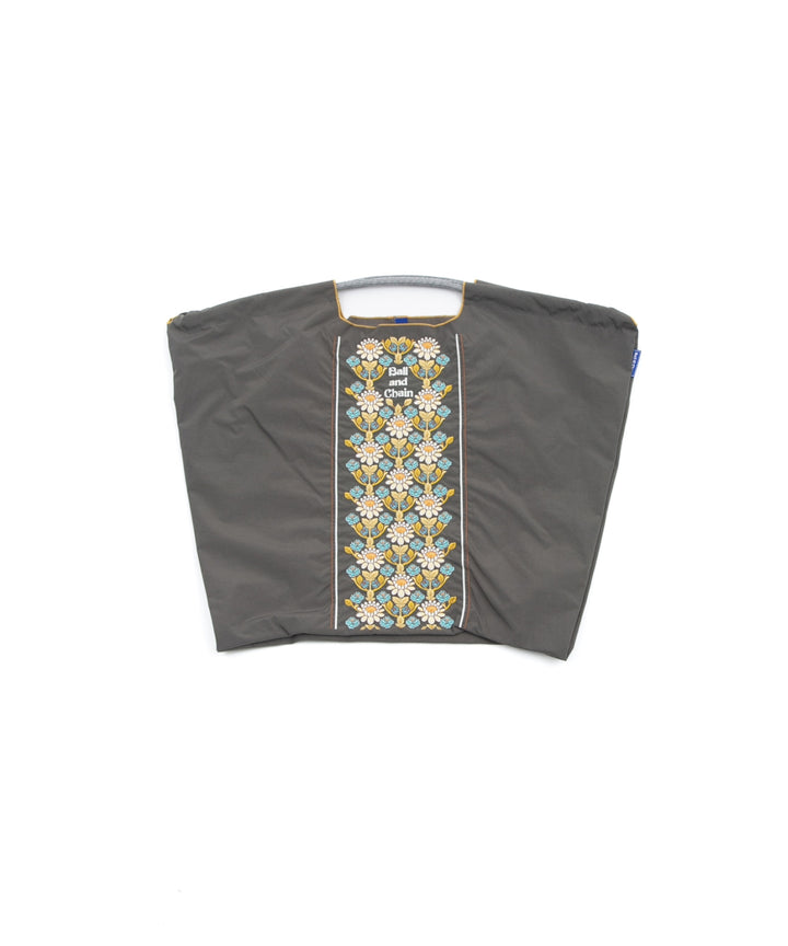 Ball and Chainは大切に使い続けたいと思える優れた デザインのショッピングバッグです。 耐久性、撥水性に優れた厚手のポリエステル素材に、 グラフィックデザインをそのまま「刺繍」で施すことで、 高級感がありデザイン性の高いバッグとなっています。 丸く折りたたみ付属のゴムバンドでとめると手のひらほどの コンパクトサイズになるため、持ち運びにも便利です。 普段のお買い物はもちろん、エコなプレゼントとしてもおススメです。
