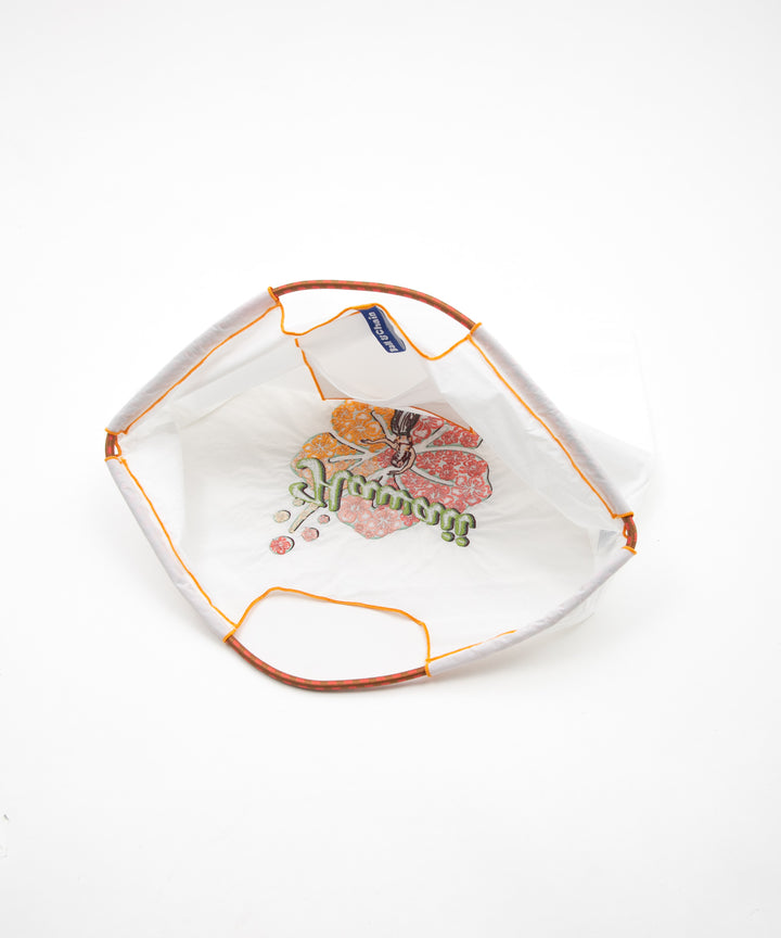 Ball and Chainは大切に使い続けたいと思える優れた デザインのショッピングバッグです。 耐久性、撥水性に優れた厚手のポリエステル素材に、 グラフィックデザインをそのまま「刺繍」で施すことで、 高級感がありデザイン性の高いバッグとなっています。 丸く折りたたみ付属のゴムバンドでとめると手のひらほどの コンパクトサイズになるため、持ち運びにも便利です。 普段のお買い物はもちろん、エコなプレゼントとしてもおススメです。