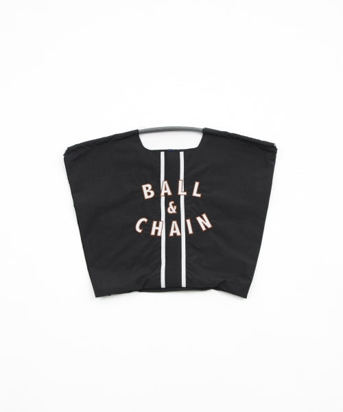 Ball and Chainは大切に使い続けたいと思える優れた デザインのショッピングバッグです。 耐久性、撥水性に優れた厚手のポリエステル素材に、 グラフィックデザインをそのまま「刺繍」で施すことで、 高級感がありデザイン性の高いバッグとなっています。 丸く折りたたみ付属のゴムバンドでとめると手のひらほどの コンパクトサイズになるため、持ち運びにも便利です。 普段のお買い物はもちろん、エコなプレゼントとしてもおススメです。