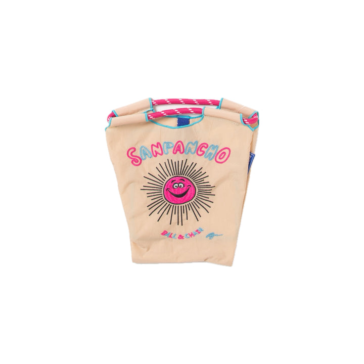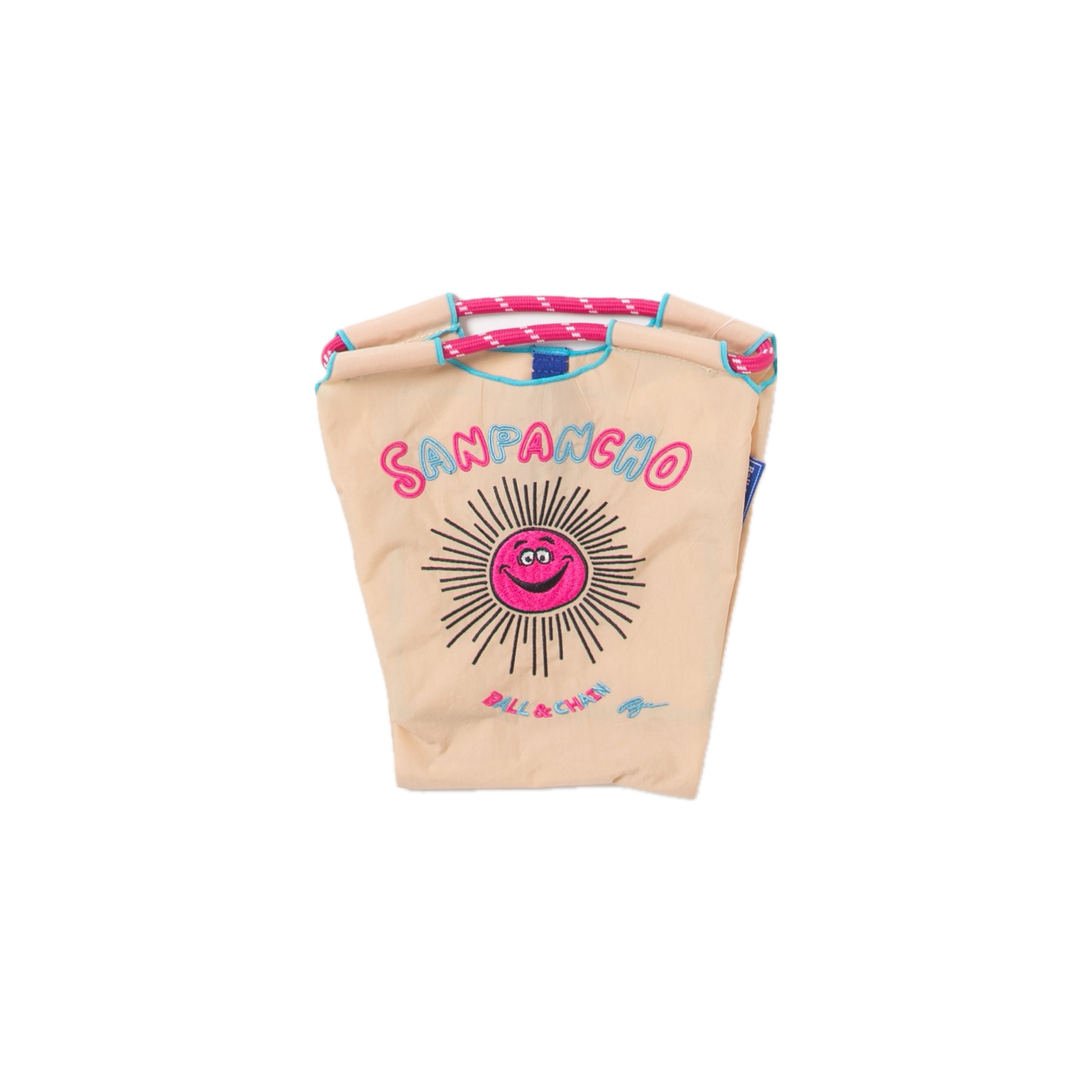 Ball and Chainは大切に使い続けたいと思える優れた デザインのショッピングバッグです。 耐久性、撥水性に優れた厚手のポリエステル素材に、 グラフィックデザインをそのまま「刺繍」で施すことで、 高級感がありデザイン性の高いバッグとなっています。 丸く折りたたみ付属のゴムバンドでとめると手のひらほどの コンパクトサイズになるため、持ち運びにも便利です。 普段のお買い物はもちろん、エコなプレゼントとしてもおススメです。