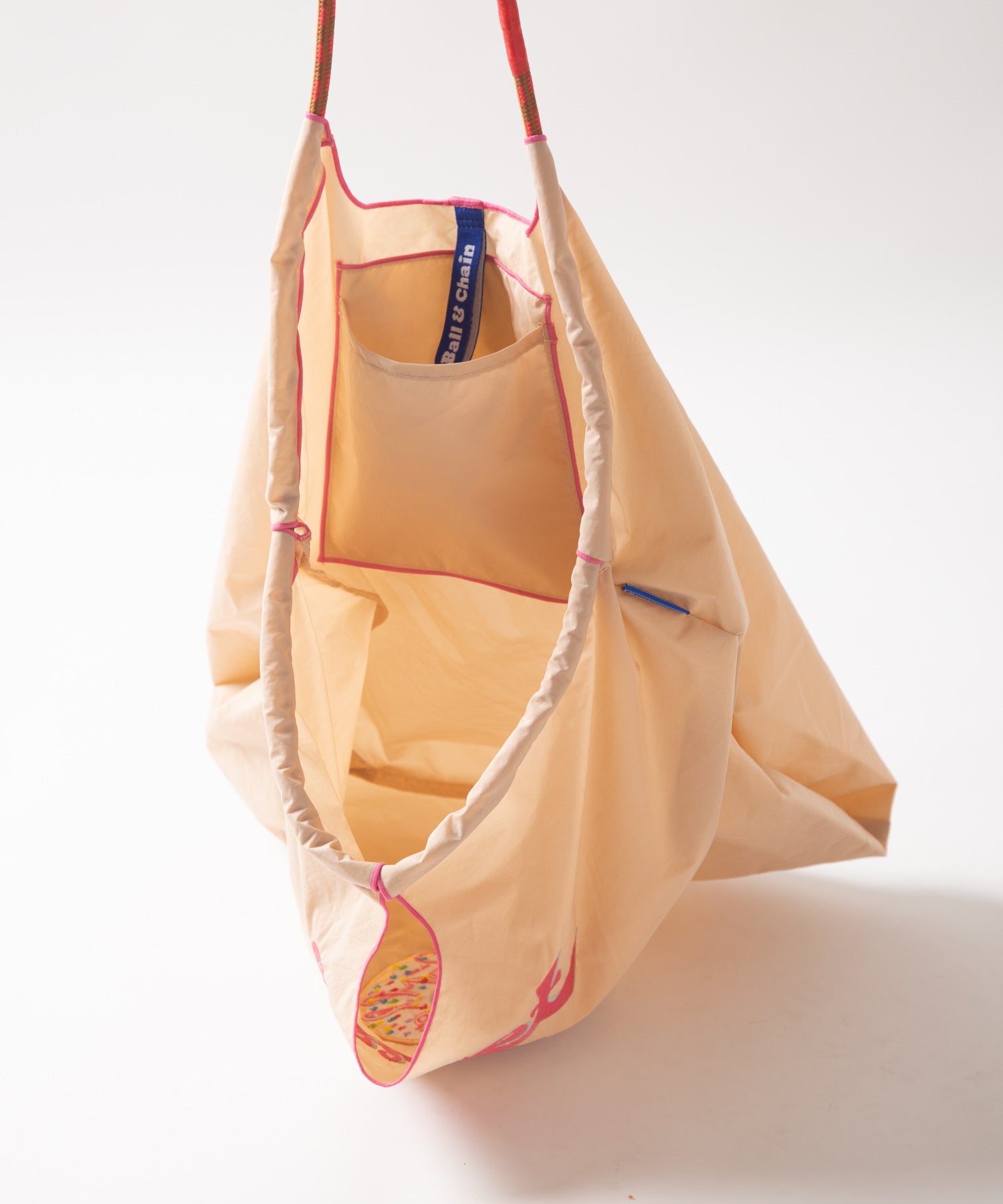 Ball and Chainは大切に使い続けたいと思える優れた デザインのショッピングバッグです。 耐久性、撥水性に優れた厚手のポリエステル素材に、 グラフィックデザインをそのまま「刺繍」で施すことで、 高級感がありデザイン性の高いバッグとなっています。 丸く折りたたみ付属のゴムバンドでとめると手のひらほどの コンパクトサイズになるため、持ち運びにも便利です。 普段のお買い物はもちろん、エコなプレゼントとしてもおススメです。